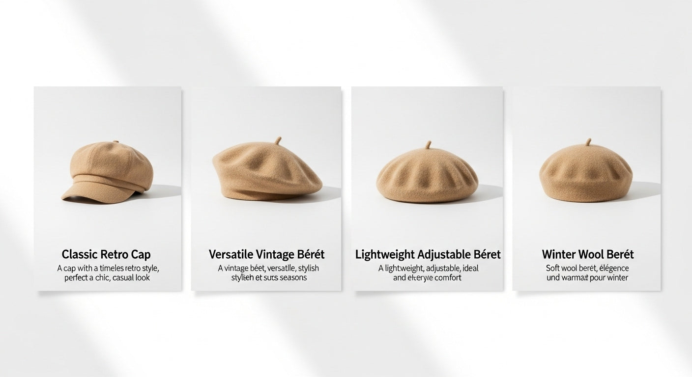 Chaque béret et casquette de cette collection est conçu avec soin, alliant textures douces, teintes classiques et lignes subtiles. Que vous préfériez un style rétro décontracté ou une allure parisienne raffinée, nos modèles vous permettent d’exprimer votre personnalité avec confiance et élégance.